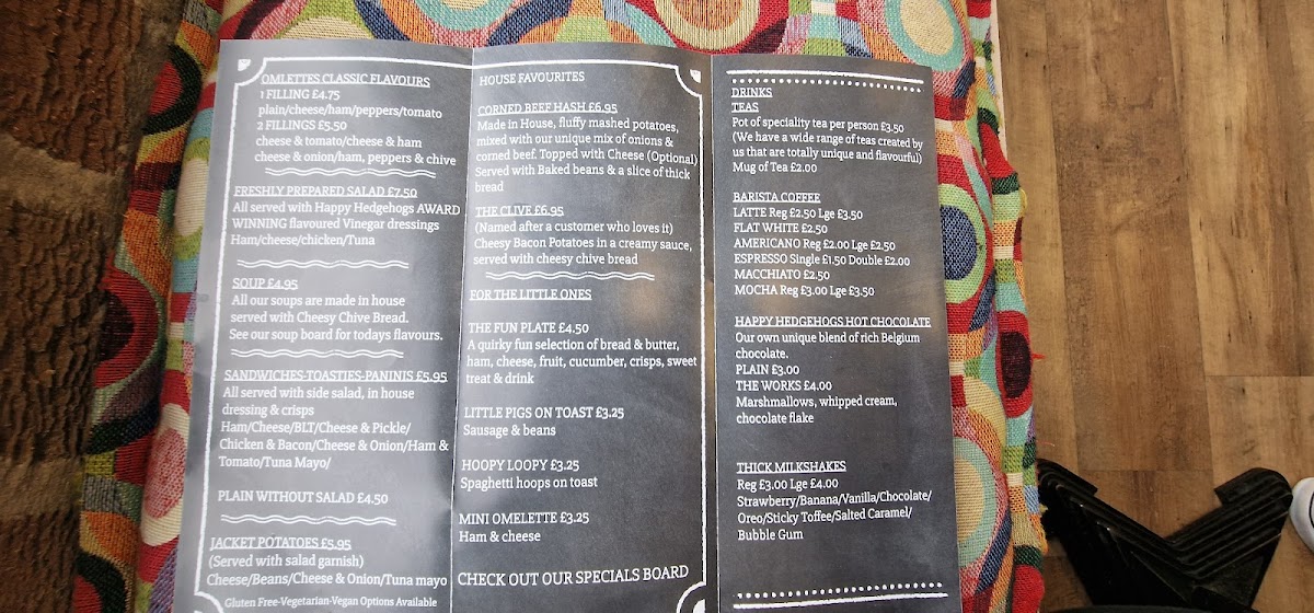 The Happy Hedgehog Cafe Menu